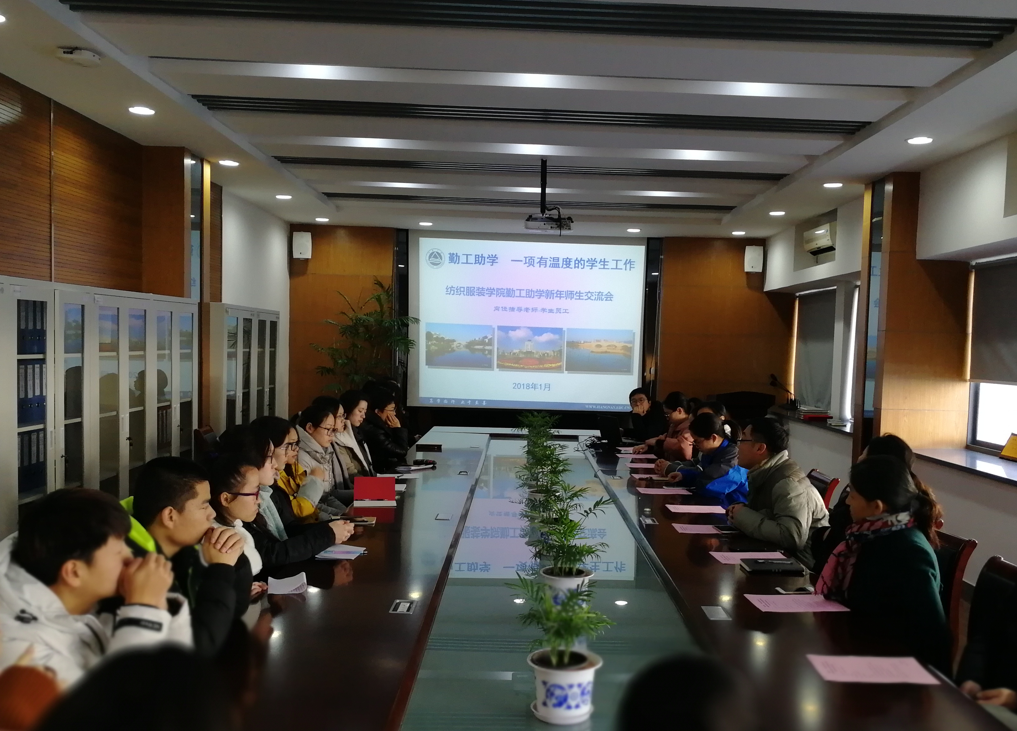 2018年1月10日中午12:30,纺织服装学院勤工助学新年师生交流会在学院A306会议室召开。学院党委副书记、副院长周云龙,辅导员陈裕和学院各用工部门岗位指导教师及学生员工参加此次交流会,会议由学院奖惩资助工作负责老师陈裕主持。