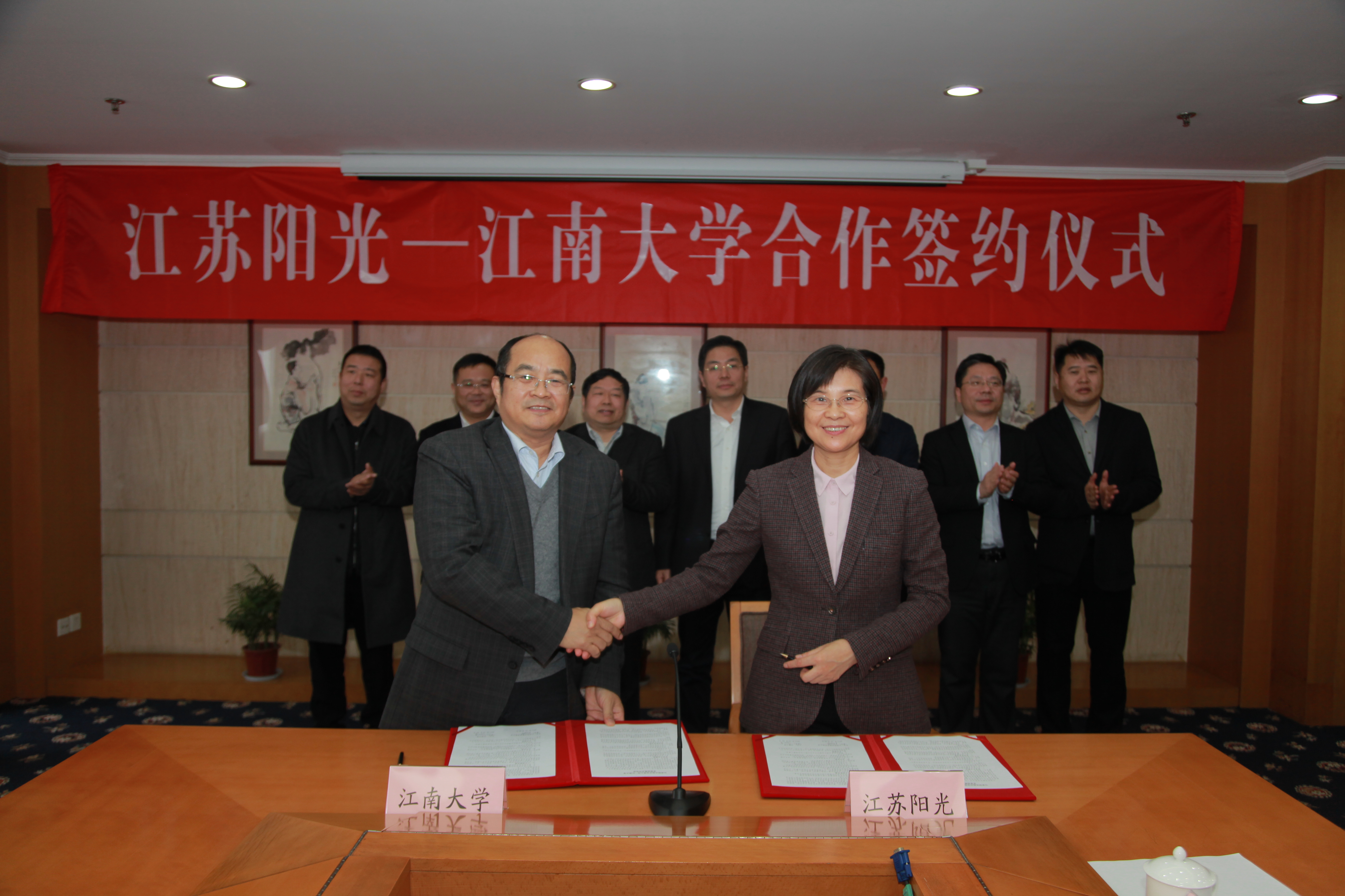 原副校长、纺织服装学院教授高卫东与江苏阳光股份有限公司董事长陈丽芬在全面战略合作协议书上签字,江阴市委副书记崔荣国、副市长赵强等相关领导出席了签约仪式,成人网站