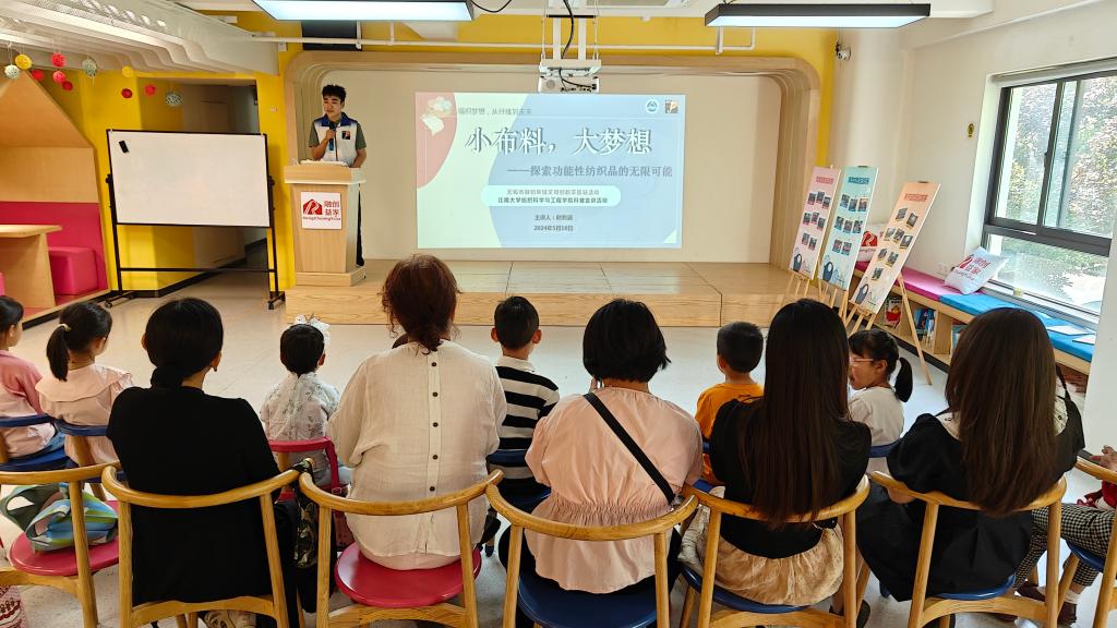 轻化2201班团支部来到融创荣域文明创新实践站,开展纺织科学知识科普,为这里一年级的小朋友们带来一场以功能性纺织品为主的科普宣讲活动。团支部的团员青年把纺织科学知识与小朋友们的日常生活相结合,助力儿童科技启蒙,传递爱国情怀,激发儿童对纺织科学知识的兴趣。