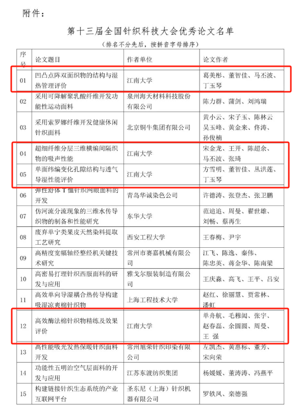 大会还进行了第十三届全国针织科技大会优秀论文颁奖,成人网站《凹凸点阵双面织物的结构与湿热管理评价》《超细纤维分层三维横编间隔织物的吸声性能》等8篇论文获评第十三届全国针织科技大会优秀论文(共评选出45篇),中国针织工业协会专家技术委员会主任瞿静、常务副主任杨启东为获奖者颁发了证书。