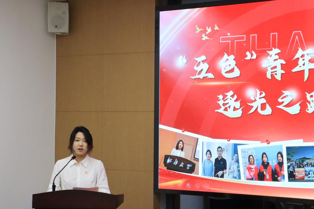 活动中,团员们通过“知光”引领、“织光”成炬、“至光”前行三个部分学习怀念钱之光先生为纺织行业做出的杰出贡献。通过卷轴展示、情景讲述,以“知光”引领探寻钱之光波澜壮阔的一生。透过历届“纺织之光”获奖学子的感谢信,展示他们在新的学习、工作岗位上“织光”成炬,不断追求卓越的奋进脚步。随后,纺织2202班团支部书记李子心以《争做向光的五色青年——追逐光、成为光、发散光》为题,分享求学中“至光”前行故事。会上,吴垚为王鸿博颁发“钱之光”特称团支部指导教师聘书。