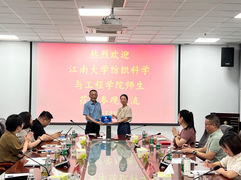 前往江苏联发纺织股份有限公司开展 “名企有约”走访调研暨暑期社会实践活动。学院党委副书记、副院长杨莉勤,副院长张丽平,轻化工程系主任殷允杰、副主任苏静,学工办主任任学敏,辅导员伍胤鸿、张旭、孙洲龙及22名本科生、研究生代表参加活动。