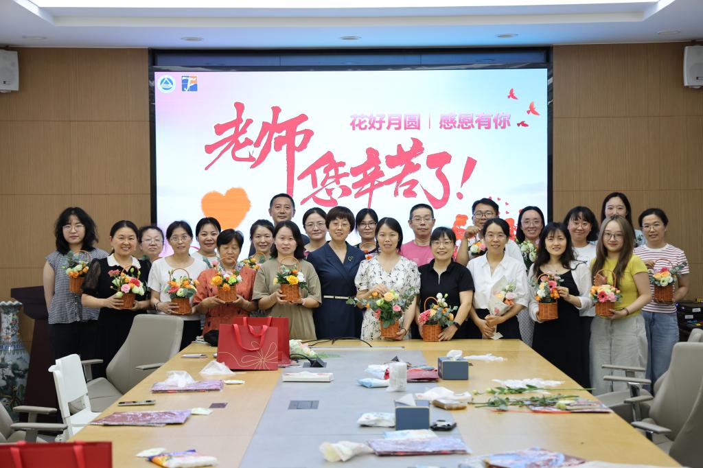 学院分工会组织了“花好月圆”手工活动,老师们积极参与插花艺术创作与手工月饼制作。活动现场花香四溢、笑语盈盈,老师们巧手搭配,将一朵朵鲜花组合成寓意美好的花艺作品;揉面、包馅、压模,亲手制作出一个个香气扑鼻的美味月饼。活动让老师们在繁忙工作之余放松身心、感受节日温暖,更增进了同事间的交流与情谊,增强了集体凝聚力。