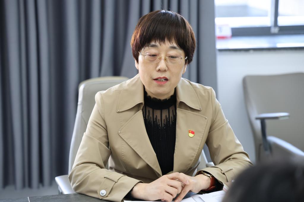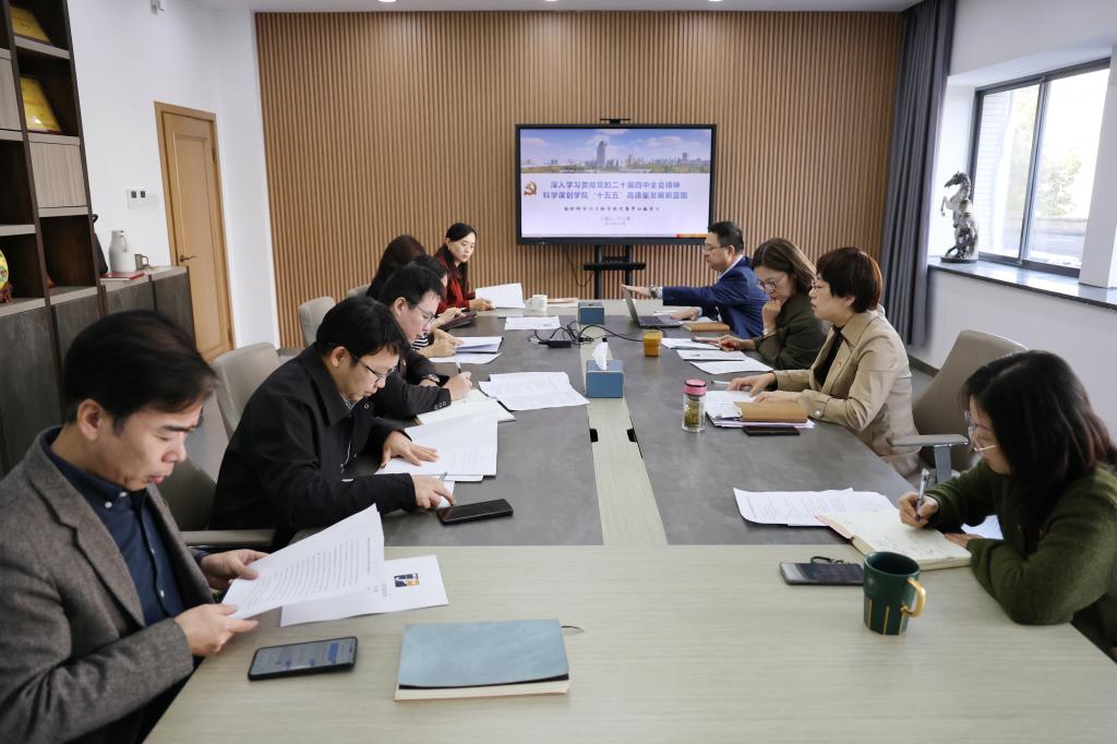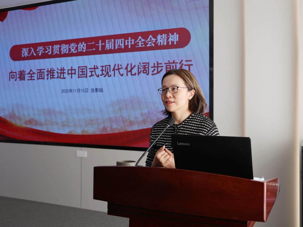 张影陆作指导讲话。她表示,此次中心组学习理论与实际相结合,有效促进了班子成员对学院发展的深度思考。她希望学院党委把学习贯彻党的二十届四中全会精神作为当前和今后一个时期的首要政治任务,进一步凝聚共识,将学习成果转化为促进学院高质量发展的实际行动。