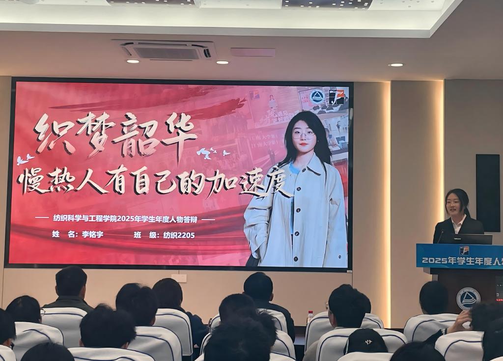青春因奋斗而灼灼其华,人生因拼搏而熠熠生辉。学院以“学生年度人物”评选为重要载体,深耕榜样沃土、广传奋进之声,以榜样之光照亮成长征途,燃动青年逐梦豪情,引领广大纺织学子锚定理想航向、勇担时代使命,以脚踏实地之姿笃行不怠,以昂扬奋进之态行稳致远。