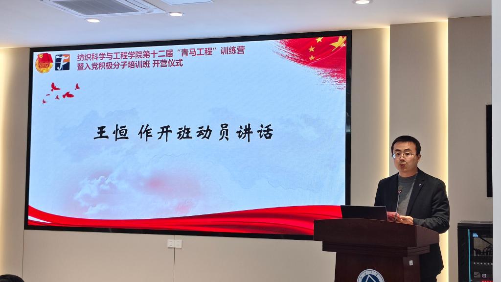 往届优秀学员孙静怡分享心得。她以自身经验和感悟现身说法,鼓励新一届青马学员们带着热情和坚持继续奔跑,为实现中华民族伟大复兴的中国梦注入纺织力量。 随后,孙静怡为第十二届“青年马克思主义者”培养工程训练营学员授旗,学员代表朴振带领全体学员宣读誓词。