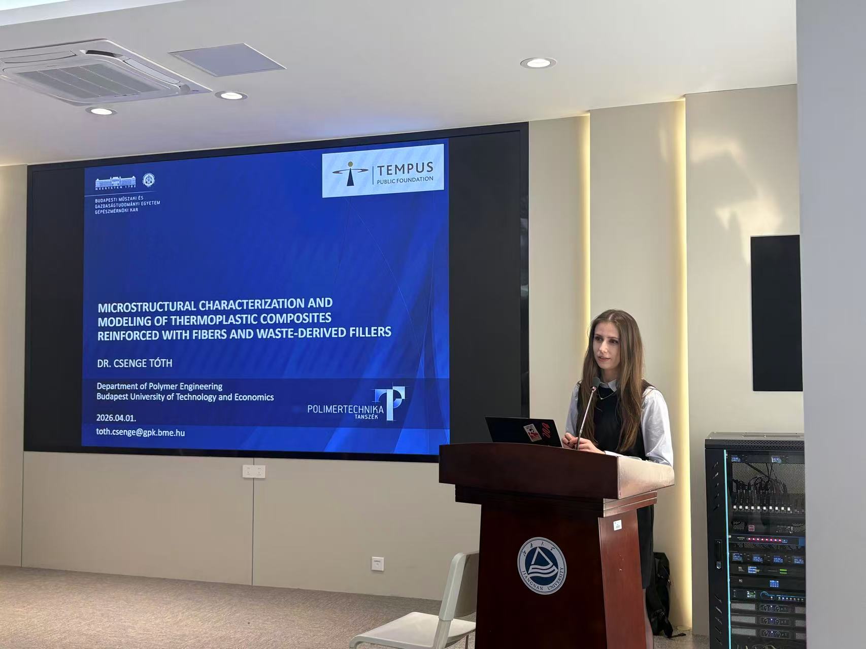 A103会议室成功举办。本次论坛旨在为纺织学院研究生搭建高水平国际化学术交流平台,通过海外专家的前沿技术分享,为同学们的科研工作注入新思路,助力深化课题研究、提升科研创新能力与国际学术视野。本次论坛特邀布达佩斯技术与经济大学(BME)聚合物工程系Csenge Tóth博士带来专题学术分享,活动面向纺织学院全体研究生,由贺海军副教授主持。